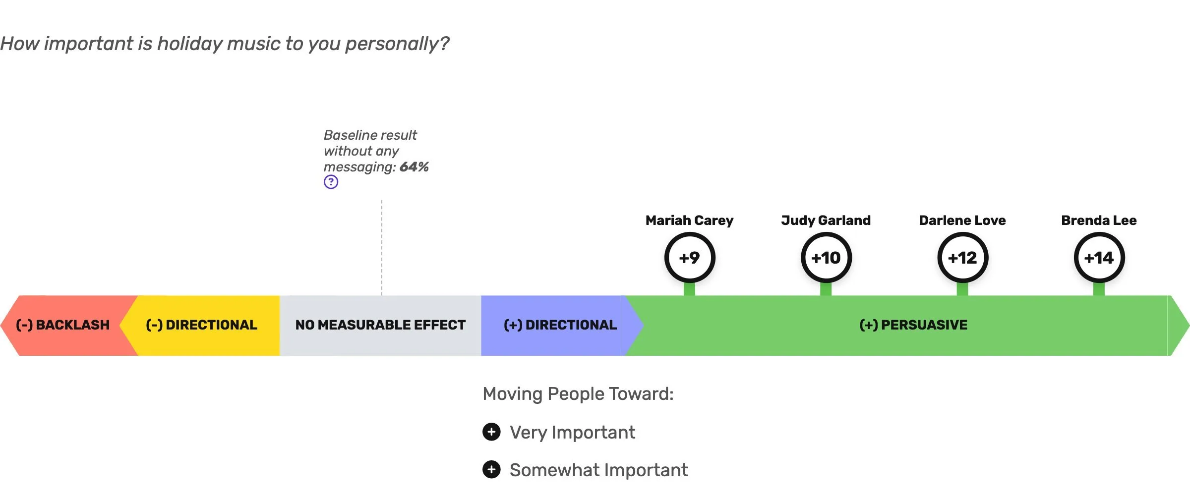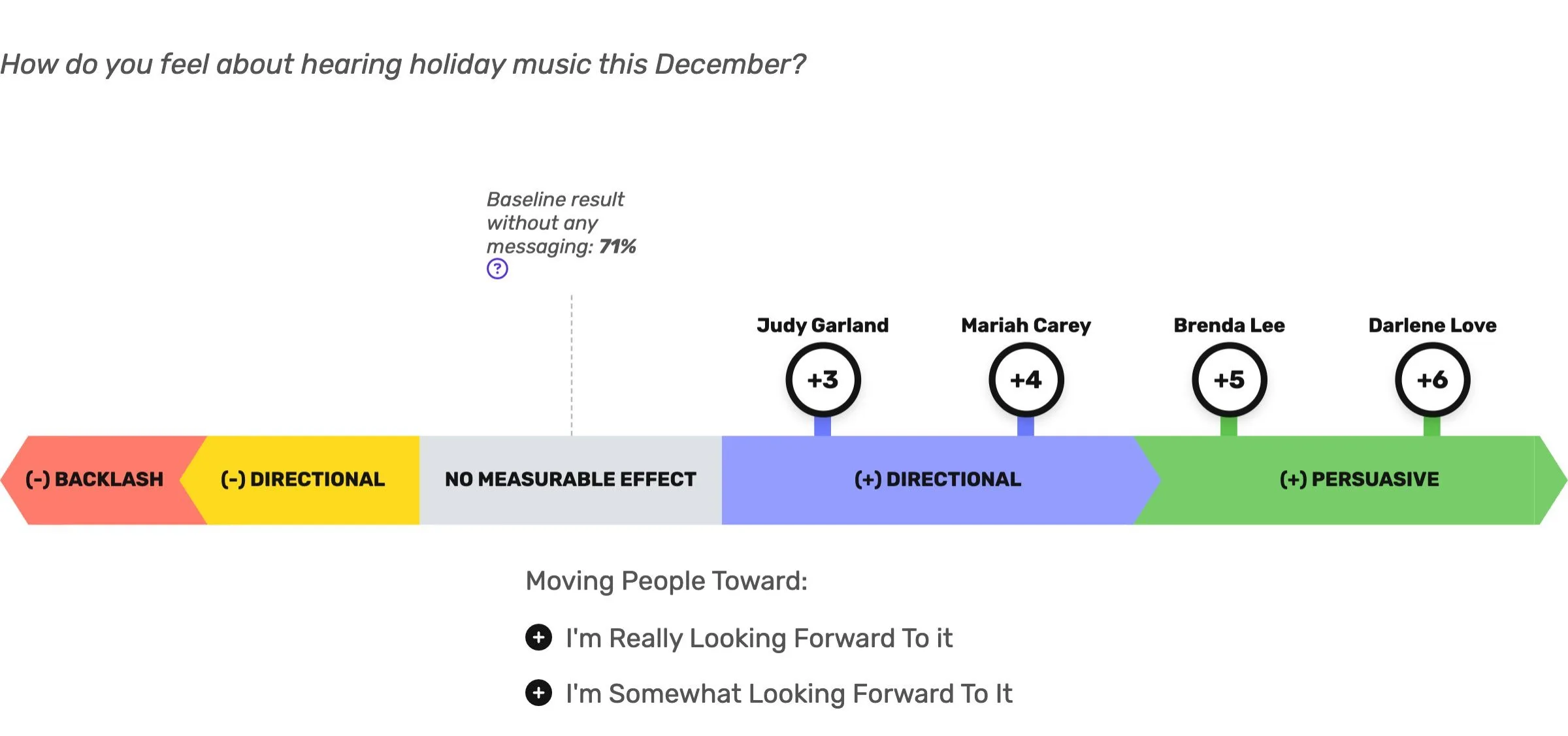 Never one to shy away from an important holiday challenge, we took a closer look using Grow Progress’ suite of persuasion products. We wanted to know the public’s opinions on the “Queen of Christmas,” and whether hearing a classic holiday track had a persuasive effect on both their perceptions and their holiday mood.