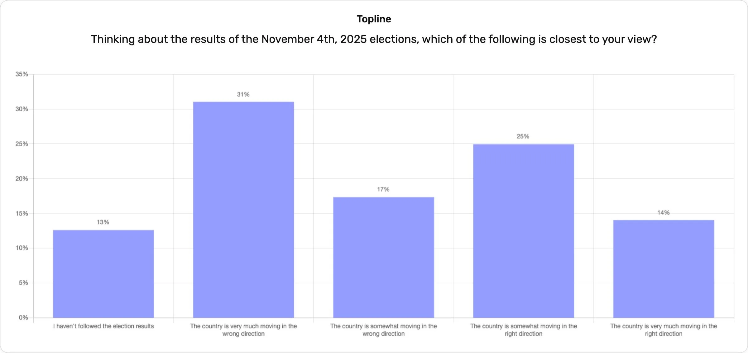 We asked, “Thinking about the results of the November 4th, 2025 elections, which of the following is closest to your view?”
