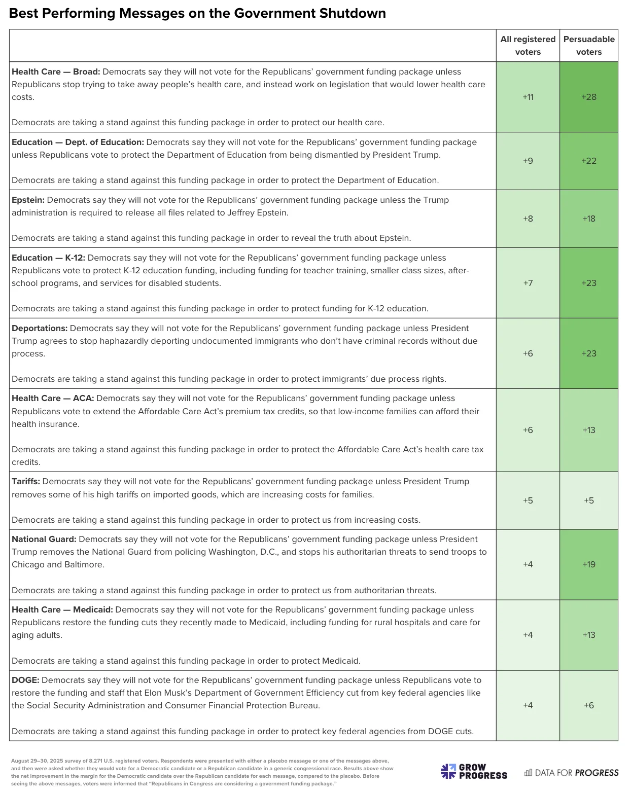 With a government shutdown looming, new research reveals which Democratic messages resonate with more than just Democratic voters.
